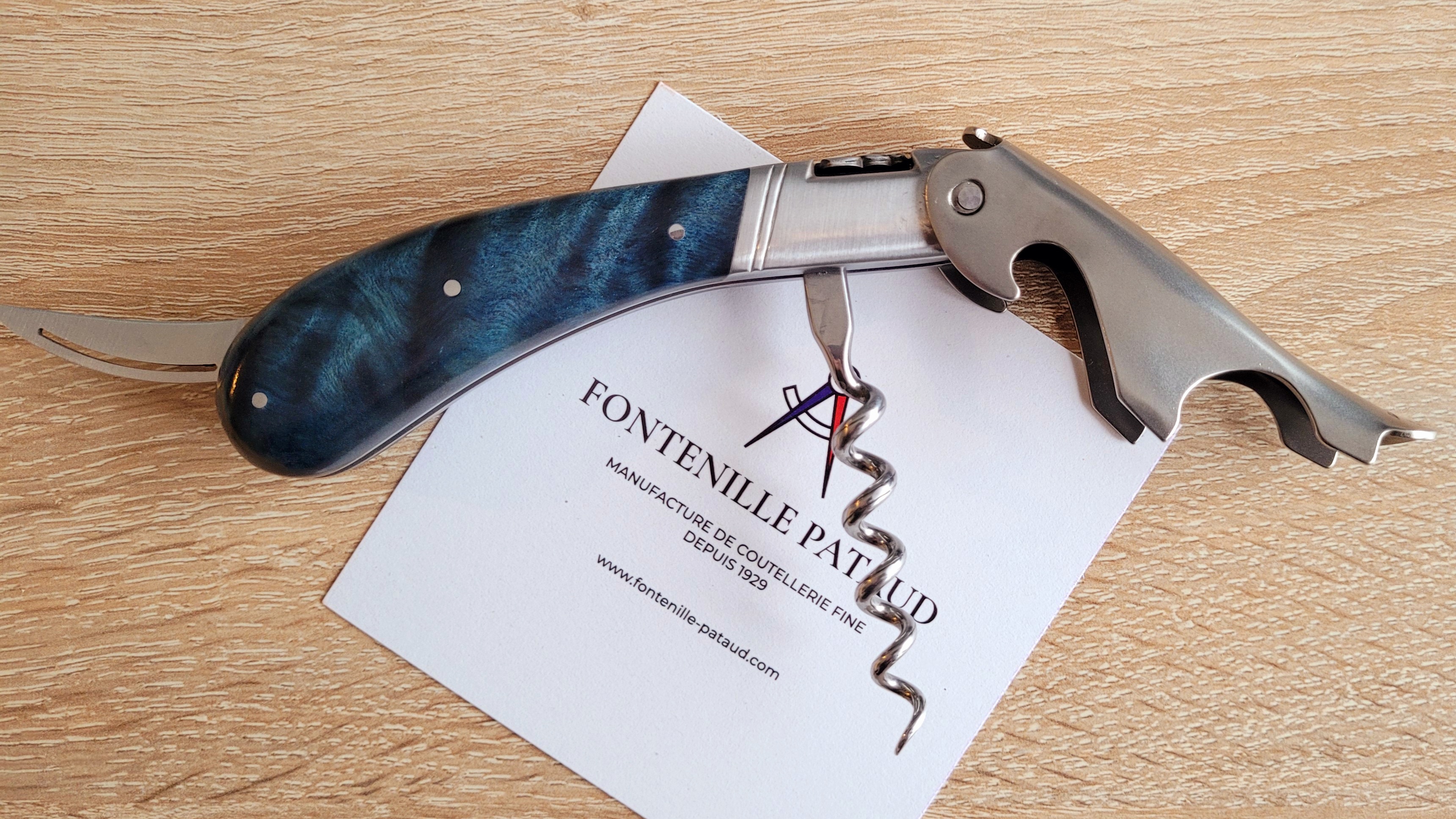 Après quelques couteaux, j'ai commandé et me suis fait livrer le tire-bouchon. Une fois de plus, je ne peux qu'admirer ce chef-d'œuvre. L'équipe de Fontenille Pataud est indéniablement de classe mondiale. La beauté, la précision et la technicité mises en œuvre dans chacune de leurs créations sont vraiment uniques. Je suis client depuis de nombreuses années et je pense que je le resterai jusqu'à la fin de ma vie.