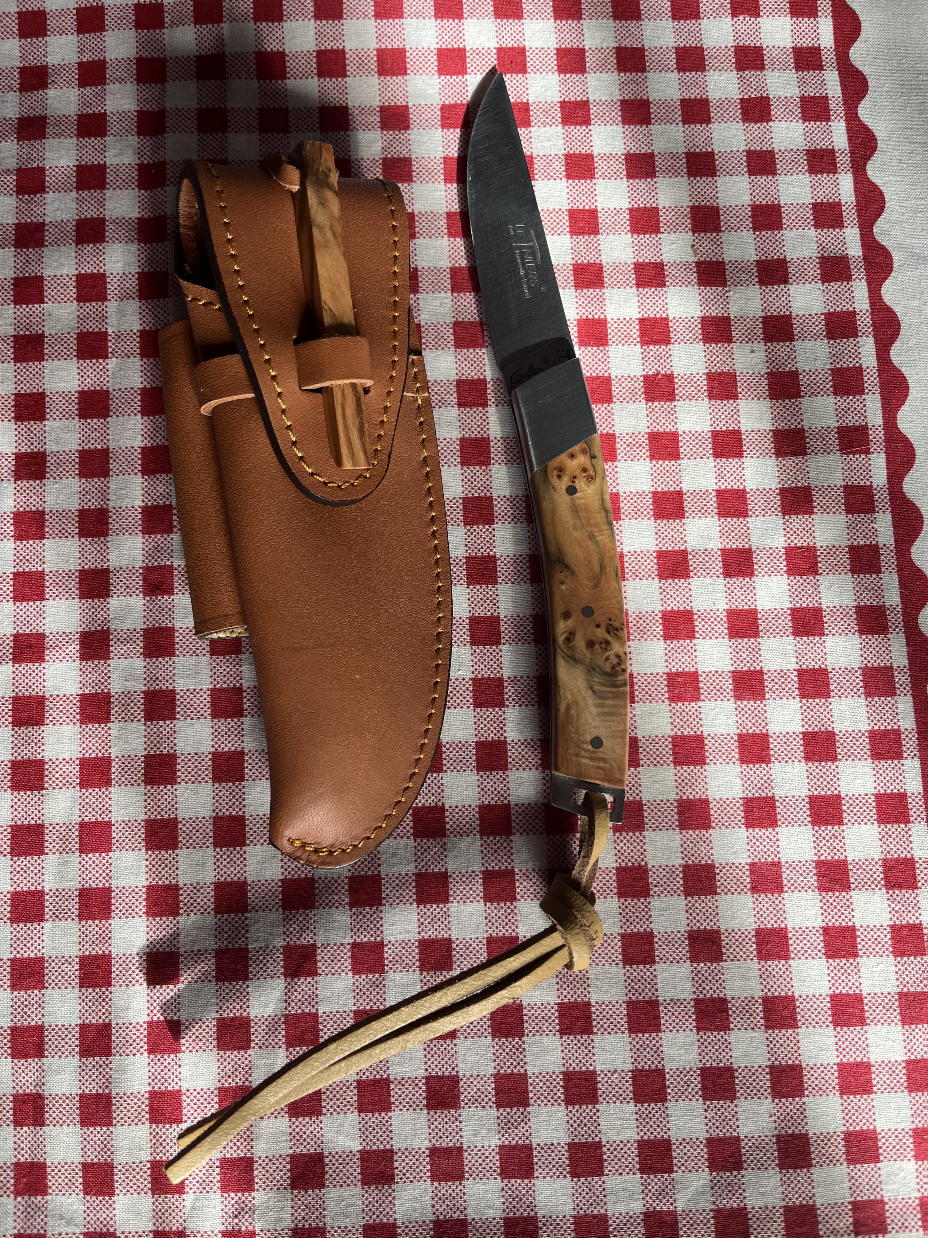 Bonjour, c'est le Quatrième couteau FD Gilles que j'achète et ce n'est certainement pas le dernier, tous sont très (trop) beaux. je recommande sans réserve. SG